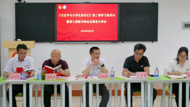 6月3日下午,《习近平与大学生朋友们》第二卷学习座谈会暨第七届数字峰会志愿者分享会在9号楼思政课VR实践教学中心举行。校长凌启淡出席活动并讲话。会议由校党委副书记王长勇主持。
