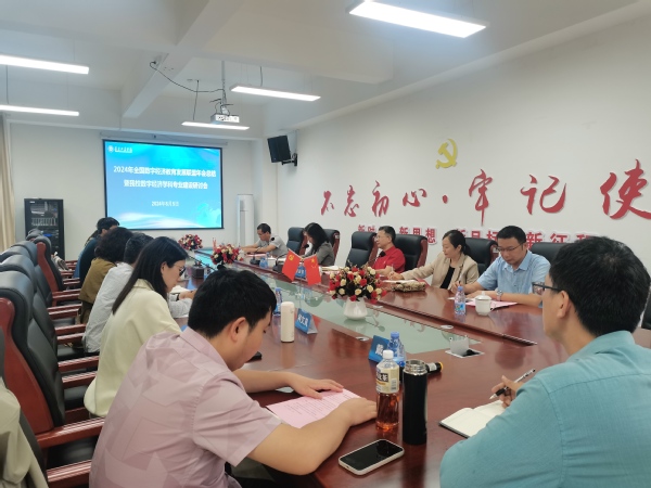 6月1日,2024 年全国数字经济教育发展联盟年会暨“数字经济与新质生产力发展”学术会议在福建江夏学院成功举办。为更好地总结经验,进一步提升我校数字经济专业建设水平和人才培养质量,6月5日,经济贸易学院召开2024年数字经济联盟学术年会总结暨数字经济学科专业建设研讨会,副校长朱四海、科研处处长吴军梅、人事处处长王国杰,经济贸易学院院长范一青、数字经济学科带头人周小亮教授,教务处代表、经济系和数字经济系教师代表出席此次会议。会议由经济贸易学院副院长刘名远主持。