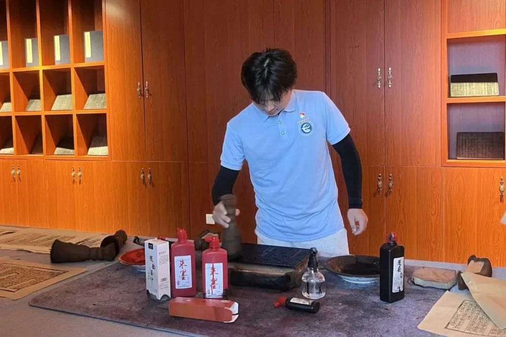 实践团师生走进考亭书院内的建本文化展览馆,通过浏览建本实物资料、观看建本文化宣传视频,了解建本文化的发展历程和独特的历史文化价值。在讲解员的指导下,师生们还动手体验了建本雕版印刷的基本流程,深刻体会到传承和弘扬中华优秀传统文化的重要性。