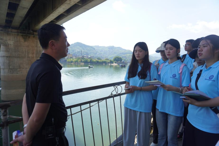 翠屏湖畔,风光旖旎,宛若诗行跃然纸上,正是对“幸福河湖”理念最生动的注解。实践团一行来到坐落于湖畔的翠屏湖派出所参观访问。翠屏湖派出所所长陆勇青警长向师生们介绍了翠屏湖生态治理的一系列行动措施。其中,全国首创双警(景)长制“生态警务 警民共建”、“生态警务景林共建”、“生态警务 景企共建”模式、“两队一室”建设以及翠屏湖实时监控系统的工作模式令人耳目一新。座谈会上,古田县水利局副局长刘义齐、陆勇青所长分别站在水利和警务的角度,就河长制与翠屏湖在警民协同、多部门合力、高科技赋能各方面的优势互补,形成“警(景)长+N”的创新性转化成果进行了介绍。相关做法中体现出的理论联系实际、勇于突破创新的精神,值得实践团学习与借鉴。