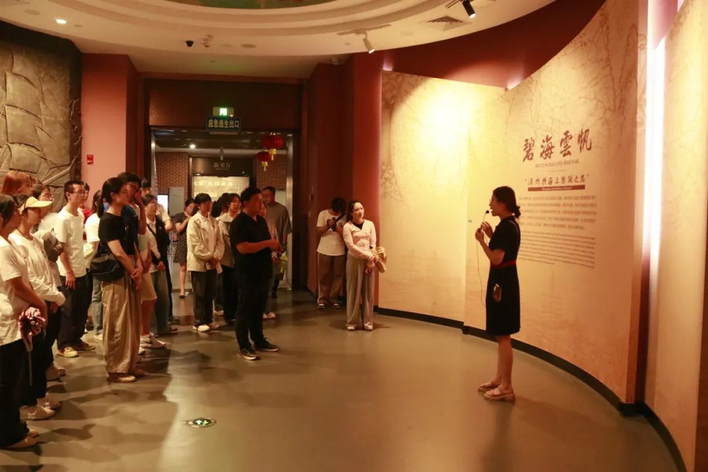 明代中后期,“海舶鳞集、商贾咸聚”的漳州月港是当时中国唯一合法的民间海上贸易港口,也是“海上丝绸之路”的重要始发港,通商达到47个国家和地区。实践团跟随讲解员,了解月港发展兴盛再到衰落的全过程。随着月港扬帆起航的商船,一批批泛海迁徙、奔赴岛夷的闽南人的足迹,以及一件件远洋回来的“番货”,漳州通过“海上丝绸之路”打开了通往世界的大门,民间信仰、生活习俗、传统技艺、方言文化等也随之传播到海外,中华文化与世界各地文化沟通交流,形成了深厚的海丝文化底蕴。
