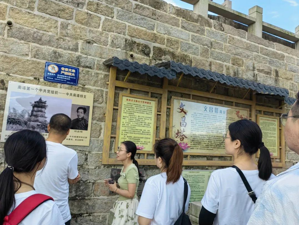 以红色文化为引领,激发强国志爱国情。碧波荡漾的九龙江旁,耸立着一座400多年的七层建筑——文昌塔。在漳州市南靖县靖城镇副镇长的带领下,实践团了解到文昌塔曾是中共南靖特别支部临时驻扎地,在特定的历史时期发挥着中国共产党领导人民群众与反动派进行不屈不挠斗争的重要作用,是红色基因在南靖代代相传的见证者。