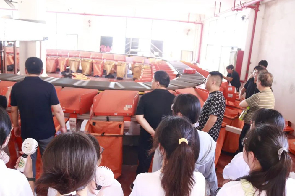 从“工厂生产”到“物流供应”到“直播营销”再到“企业文化”,实践团带着课题,走访优秀校友企业——龙海新邦电子商务有限公司。实践团一行在2007届校友陈智容的介绍下,参观了企业多条食品加工产业链,并体验了称重、搬运、包装等过程;“沉浸式”感受物流智能筛选、分拣全过程,上了一堂物流管理专业“实训课”。在公司总部电商部,陈智容还为实践团成员们详细讲解了食品包装设计、电商运营、直播营销等产品销售流程。市场营销专业学生发挥专业优势,现场进行了一场“网络直播”。