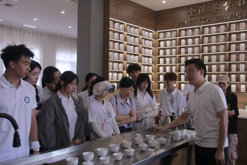 习近平总书记曾指出,要统筹做好茶文化、茶产业、茶科技这篇大文章。实践队探访了仙游县福建金溪茶业有限公司,参观制茶全自动生产线,体会科技与茶文化的完美结合。在,朱松羽副总经理向实践队员们介绍了仙游种茶制茶的历史及金溪茶业种植新路径——以科技为翼引领企业发展,以需求为导向开发新产品。实践队师生品尝了金溪茶叶创新中式果茶饮,在品味茶香果甜之余,感叹茶科技的巨大魅力,深感在当今激烈的市场竞争中,企业要生存发展,只有以客户需求为导向不断创新、不断开发,才能层出不穷地推出引领市场的拳头产品。