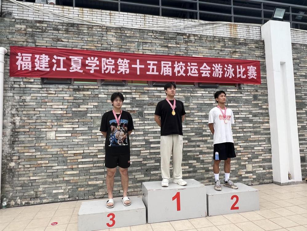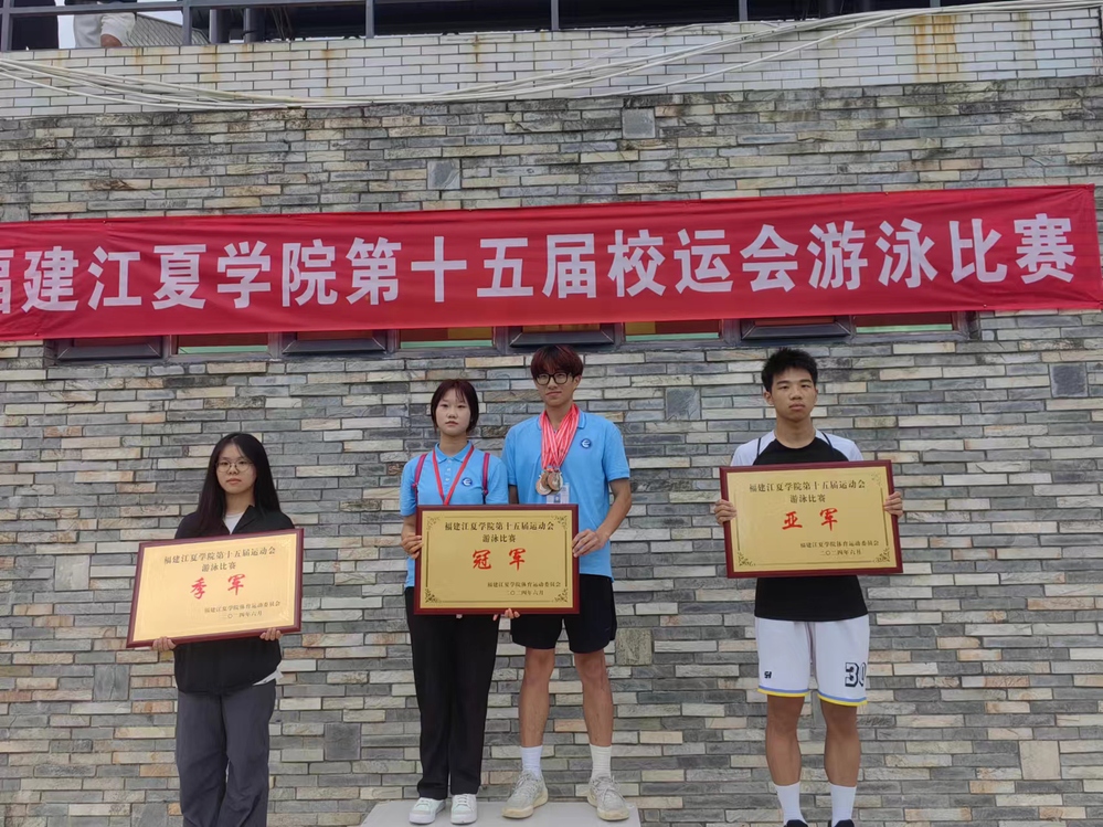 2024年9月28日,公共体育部组织举办2024年福建江夏学院第十五届运动会——游泳比赛,本次比赛男女组各6个项目:100米自由泳,100米蛙泳、100米仰泳、100米蝶泳、200米混合泳,400米自由泳。12个代表队参加,共110名运动员,经过激烈的比赛,经贸学院获得团队总分冠军,金融学院获得团体总分第二名,海峡财经学院获得团体总分第三名。
