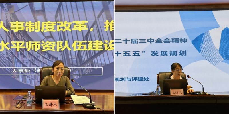 人事处、发展规划与评建处负责人结合学习体会和学校实际,围绕“科学谋划‘十五五’学校事业发展规划”“深化人事制度改革,推进高水平师资队伍建设”两个主题作交流发言,分享心得感悟、解读重要任务、畅谈工作思路。