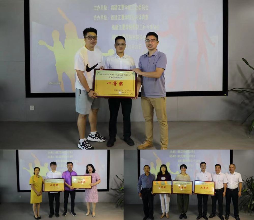 自活动开展以来,各二级工会踊跃参加、积极组队、科学训练;公共体育部老师发挥党员先锋模范作用,全程义务负责赛事的编排、裁判等赛事组织;参赛教职工本着“友谊第一,比赛第二”的原则,在赛场上互相尊重,互相学习,发扬顽强拼搏、团结协作的精神,赛出了风格,赛出了水平。经过激烈角逐,最终工程学院工会荣获团体一等奖,机关第二工会、联合工会荣获团体二等奖,金融学院工会、设计与创意学院工会、外国语学院工会荣获团体三等奖。