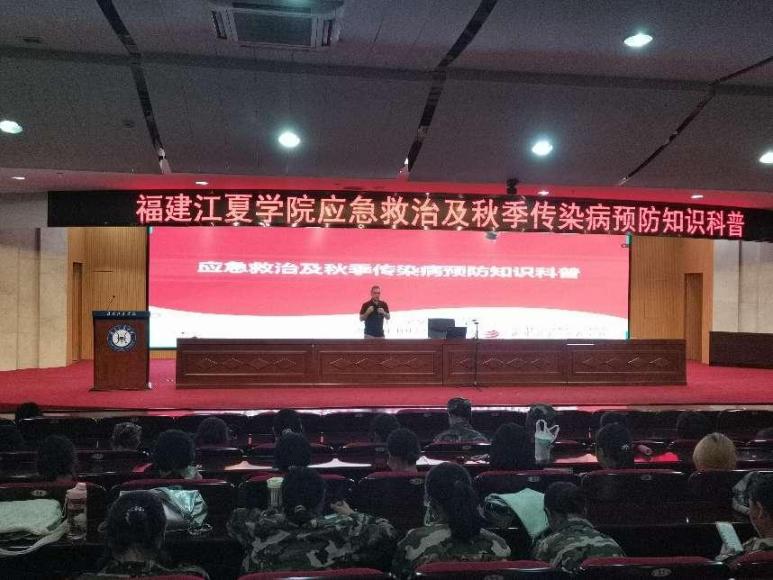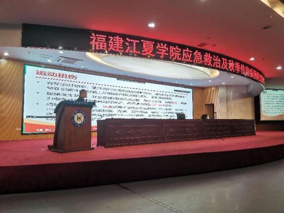 为增强广大师生的健康意识,普及应急救治和传染病预防知识,提高防病意识和应急救治能力。10月21日,基建与后勤管理处组织了2024级新生参加应急救治及秋季传染病预防知识培训。会议采取线下与线上(腾讯会议)相结合方式召开,约550名学生代表在图书馆学术报告厅主会场参加会议,讲座由福建中医药大学附属第三人民医院吴文思副主任主讲。
