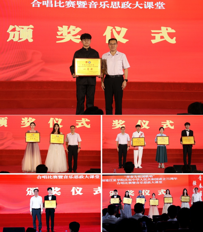 经过现场热情澎湃的展演,最终金融学院获一等奖,经济贸易学院、设计与创意学院获二等奖,会计学院、电子信息科学学院、公共事务学院获三等奖,工商管理学院等6个学院获优秀奖,法学院获最佳人气奖。校长凌启淡、校党委副书记王长勇为获奖学院颁奖。活动在全场合唱《歌唱祖国》的嘹亮歌声中圆满结束。