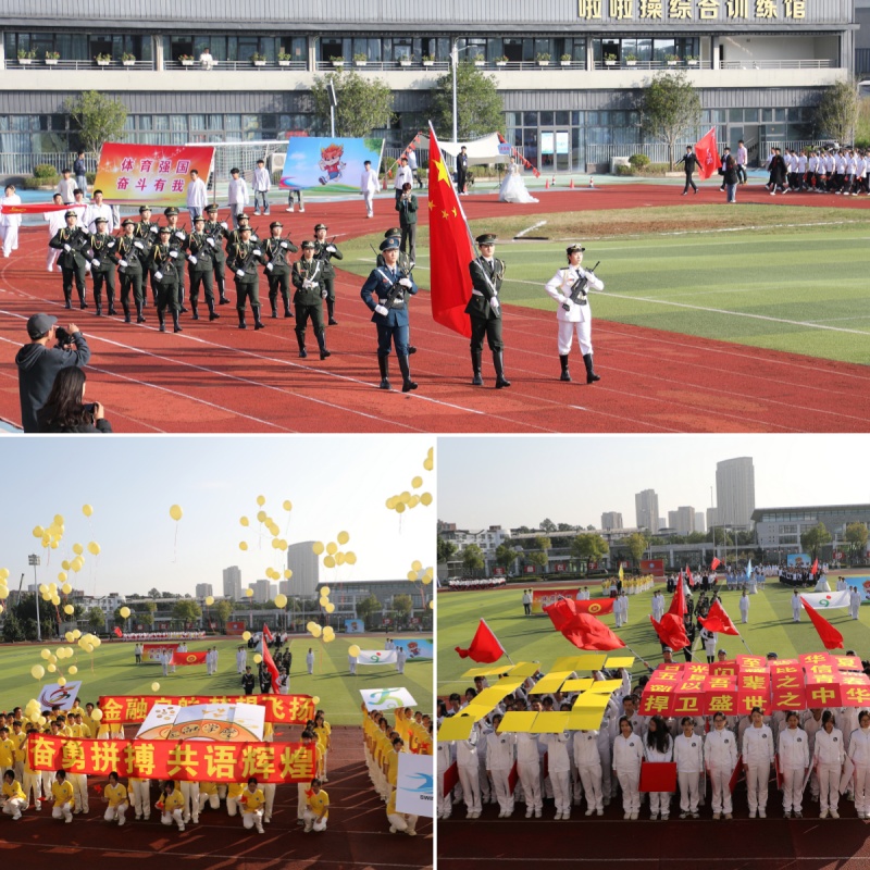伴随着《运动员进行曲》铿锵有力的旋律,国旗队、会徽队、标语队、运动员、裁判员以及各二级学院方阵依次入场。他们步伐稳健、列队整齐,口号响亮、气势磅礴,展现了新时代大学生积极向上,活力无限的精神风貌。