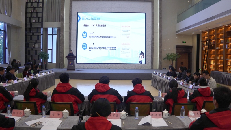 在泉州(晋江)国际人才港,实践队师生与晋江市政府办、组织部(人才办)、科技局、人社局、团委、高教发展中心、人力资本公司等单位聚焦青年人才培养与促进大学生就业开展座谈,深入了解晋江市人才工作现状和主要人才政策,介绍了学校办学的基本情况。双方就合作推进大学生寒暑期社会实践、青年实干家计划、实习就业、校园招聘等进行深入交流,并达成合作共建共识。