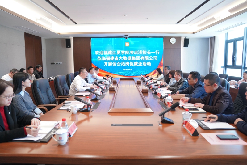 2月28日下午,校长凌启淡、校党委副书记王长勇一行赴福建省大数据集团有限公司开展访企拓岗促就业行动,参观了集团数字政府展厅,并与集团总经理张文洋及集团各部门负责人座谈交流。