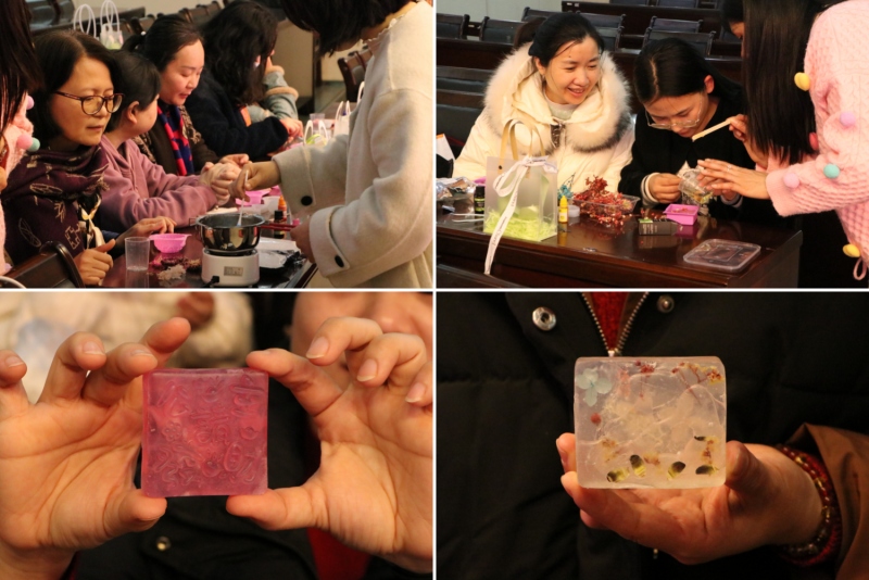 在专业老师的指导下,女同胞们认真学习香料的历史、分类及搭配,全面了解香皂的制作步骤及使用工具。她们融合个人创意与审美,将情感与智慧注入制作过程,从皂基的加热融化到配料调色调味,再到最终一块块色泽鲜艳、芳香怡人的手工皂成型出模,体验到无穷的乐趣。活动现场温馨浪漫,不仅展现了女职工的艺术才华,更体现了她们对生活的热爱,舒缓了女教职工们紧张繁忙的工作压力,获得了女职工们一致好评。