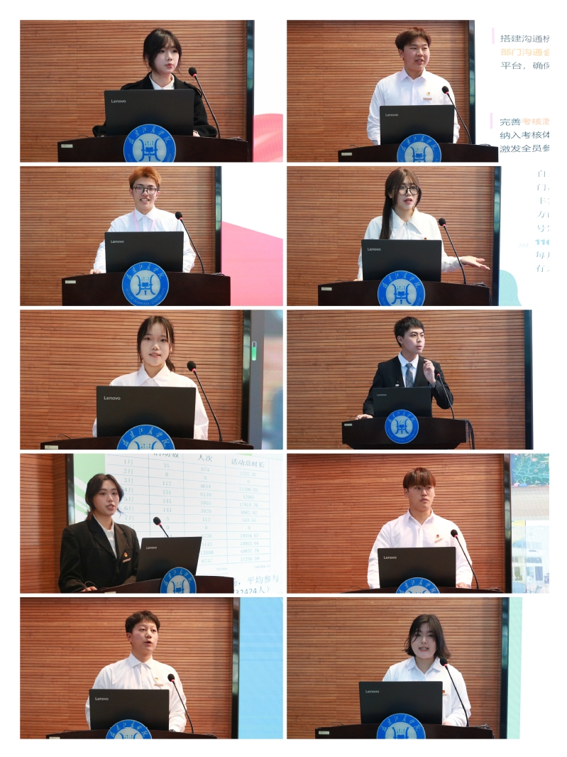 各学生组织负责人分别围绕上一年度理论学习、品牌活动、工作成效、反思与计划等方面进行汇报。校团委指导教师依次对联系学生组织作工作点评,并就本学期的重点工作进行部署。