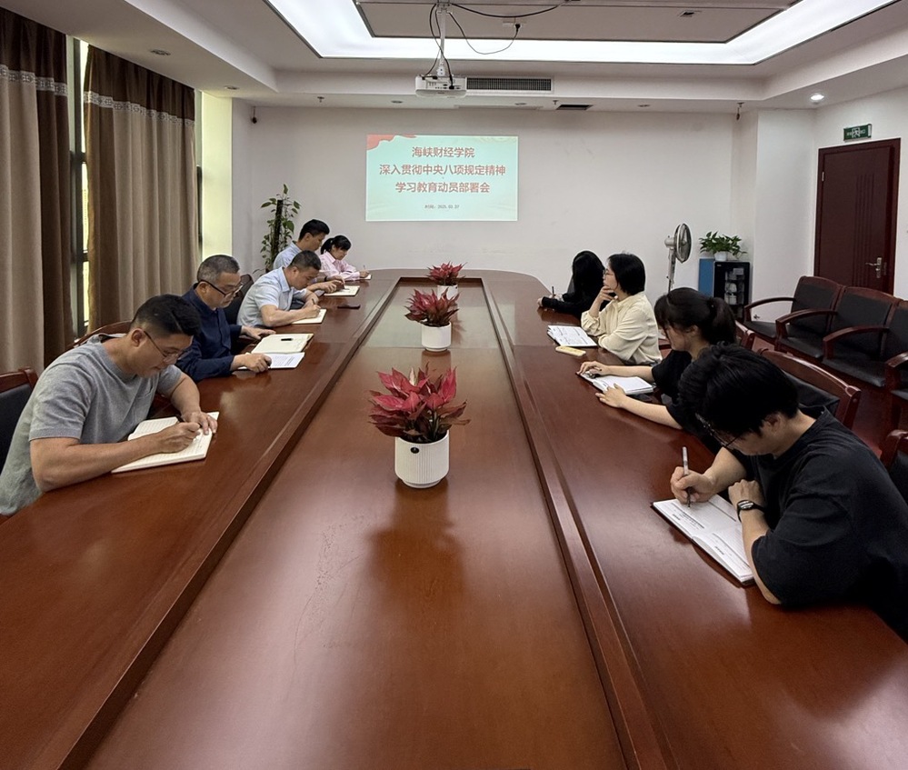 3月27日下午,福建江夏学院海峡财经学院召开深入贯彻中央八项规定精神学习教育动员部署会。学院党委书记邱玉斌主持会议并作动员讲话。会议深入学习贯彻习近平总书记关于深入贯彻中央八项规定精神学习教育的重要讲话和重要指示精神,传达学校关于深入贯彻中央八项规定精神学习教育部署会会议精神,部署学院学习教育工作。学院党委班子成员、党委委员、学生党支部书记参加会议。