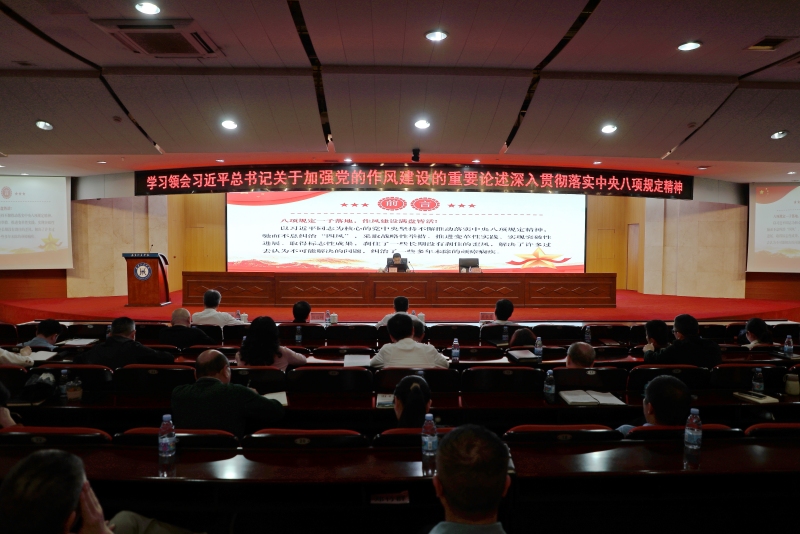4月24日下午,校党委深入贯彻中央八项规定精神学习教育读书班暨党委理论学习中心组学习会在图书馆二楼学术报告厅举行专家辅导报告会,同时作为全校处科级干部学习教育专题培训的重要培训内容。在家校领导参加学习。报告会由校党委副书记陈敏辉主持。