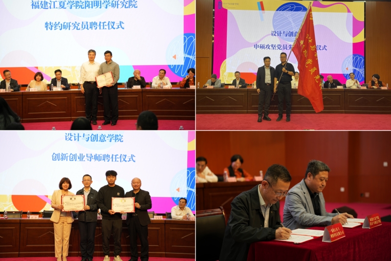 开幕式上,陈敏辉向林革颁发了福建江夏学院阳明学研究院特约研究员聘书,进一步加强阳明文化学术研究和提升科研平台建设水平。活动现场还举行警校党建共建签约仪式、校企数智创新合作共建签约仪式、申硕攻坚党员先锋队授旗仪式以及创新创业导师聘任。企业代表、省级高校原创文化精品项目负责人以及校级社会实践先进个人等师生代表依次分享了对校园文化艺术节的热切期盼与深刻感悟。
