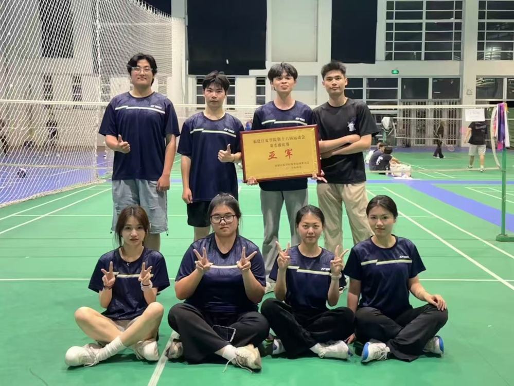 冠军争夺战由工程学院和海峡财经学院打响。比赛十分精彩,随着裁判一声清脆的哨响,羽毛球比赛正式开始。只见发球方选手微微屈膝,眼神专注地盯着对手,左手轻轻抛起羽毛球,右手的球拍顺势划出一道流畅的弧线,羽毛球如流星般越过球网。双方你来我往,羽毛球在空中来回穿梭,速度越来越快。每一次击球,球拍与球碰撞发出的“砰砰”声都扣人心弦。最后工程学院赢得最后的比赛。