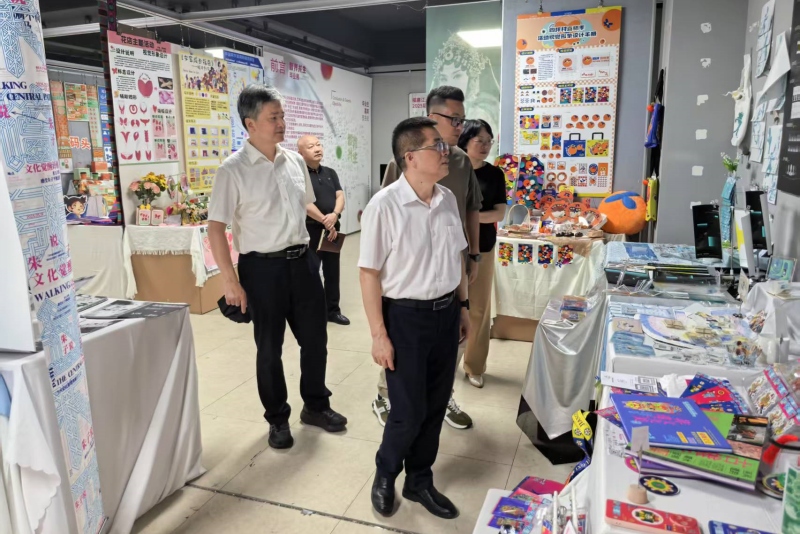 座谈会后,凌启淡、陈敏辉一行还实地参观了“智界·共生”主题毕业设计作品展,实地了解学校师生以文化产品创作推动非遗文化、红色文化、地方文化等传承与发展的情况。