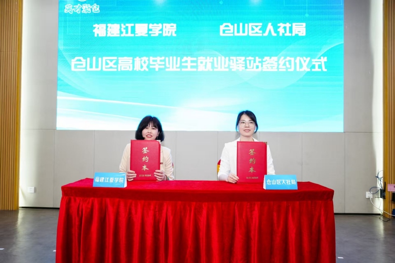 活动过程中,我校与仓山区人社局共建“福州市仓山区高校毕业生就业驿站”签约仪式在图书馆北报告厅隆重举行。该驿站是校地双方深化合作、协同推进毕业生就业工作的关键举措,建成后将充分发挥政校企三方资源,为我校毕业生提供就业指导、岗位推送、政策咨询等一站式服务。