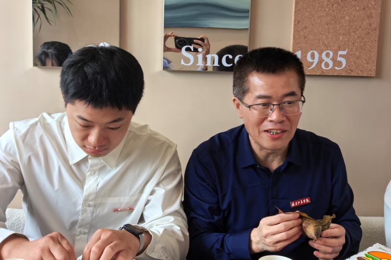 座谈结束后,凌启淡与学生共进午餐。师生围坐在一起吃粽子、话家常,从追寻伟大诗人屈原的爱国精神,到解读端午民俗中的廉洁寓意,再到探究古今中外法治的融通发展,现场气氛温馨融洽。凌启淡以“粽叶裹米”为喻,教导同学们“人生如粽,纪律为绳,清白立世”,勉励大家将廉洁自律融入职业生涯,并鼓励同学们积极传承中华优秀传统美德,涵养自身的思想品德。