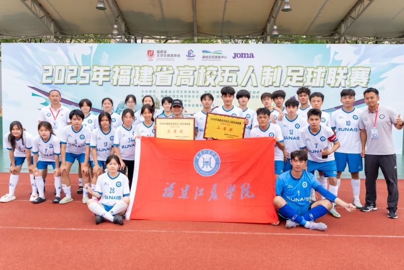 近日,由福建省大学生体育协会主办的2025年福建省高校五人制足球联赛在南平浦城圆满结束,吸引了全省26所高校的近千名运动员参赛。由公共体育部江武贵、林东序两位教师担任领队的男、女足球队在赛场上奋勇拼搏,经过四天的激烈角逐,我校男子足球队荣获校园男子组二等奖,女子足球队荣获校园女子组三等奖。