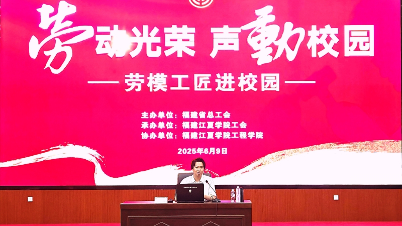 6月9日下午,由福建省总工会主办,福建江夏学院工会承办,福建江夏学院工程学院协办的“劳动光荣 声动校园——劳模工匠进校园”宣讲活动在我校举行。“福建省数字工匠”“福建省金牌工匠”“福建省五一劳动奖章”荣誉获得者,中建海峡建设发展有限公司BIM工程师张书斌受邀为师生作讲座。福建省教科文卫体工会工委二级调研员左修坤出席活动,校工会、工程学院师生代表160余人参加活动。