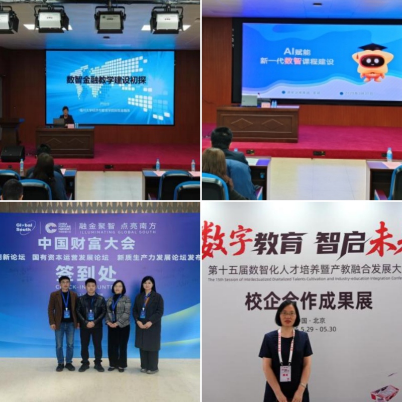 金融学院强化教师发展机制,提高教师数智素养,举办《数智金融教学建设初探》《AI赋能数智课程建设》《全球经济金融数据获取与分析》等专题讲座,为师生提供智慧课程建设、智慧综合实训平台打造、AI赋能科研等前沿指导。选派骨干教师参加“中国财富大会数字金融论坛”“数智化人才培养暨产教融合发展大会”等高端会议和专题研修班,参会心得和研修成果院内共享,促进智慧教学与AI技术应用能力提升。以赛促教,骨干教师分别获省高校教师教学创新大赛三等奖、全国高校教师技能创新大赛二等奖,实战成果反哺课堂革新,辐射数智教学创新方法。