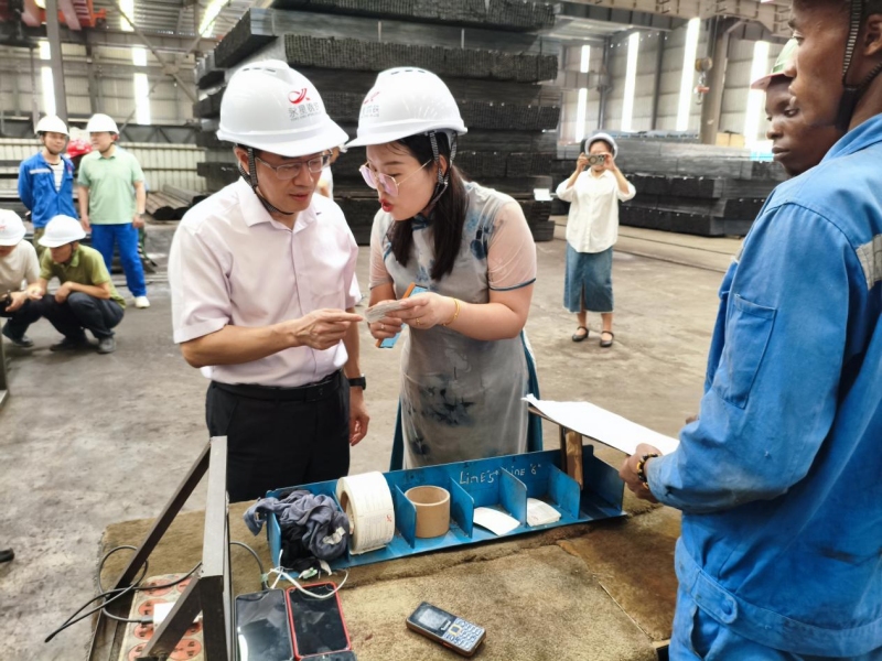 访问团走进尼日利亚永星钢铁有限公司和加纳格林豪斯国际置业集团,与企业家代表座谈,就校企合作、交流培训等项目可行性展开探讨,并签订了海外实践教学基地协议。