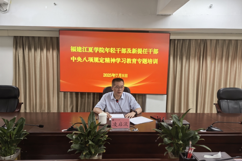 7月8日,学校召开年轻干部及新提任干部深入贯彻中央八项规定精神学习教育专题培训。校党委书记凌启淡作专题辅导。干部代表作交流发言。
