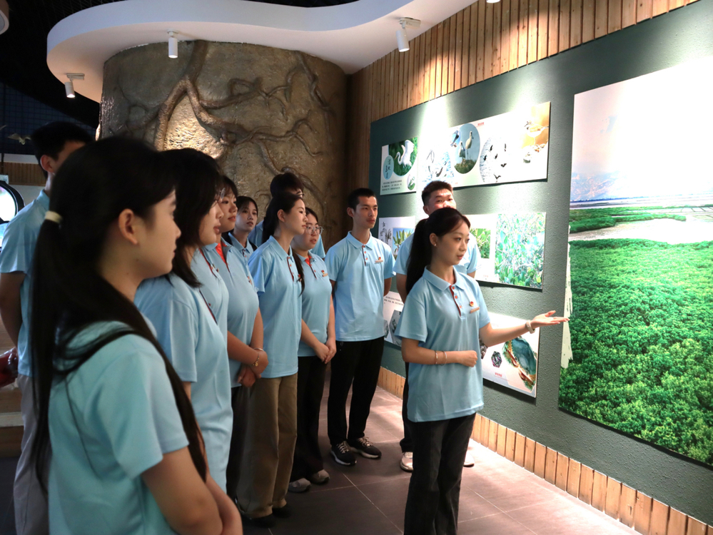 实践队还调研了漳江口红树林国家级自然保护区。智慧展厅内,这名“海岸卫士”的生态画卷在队员们眼前展开——5种原生红树植物在此扎根生长,为218种珍稀物种构筑温暖家园。大家深切认识到,保护区依托海陆空立体监测网络织就的生态防护网,以及高校产学研协同碰撞出的创新火花,正以“久久为功”的韧劲,让这片湿地持续焕发新生机,奏响着生态与发展同频共振的美妙乐章。