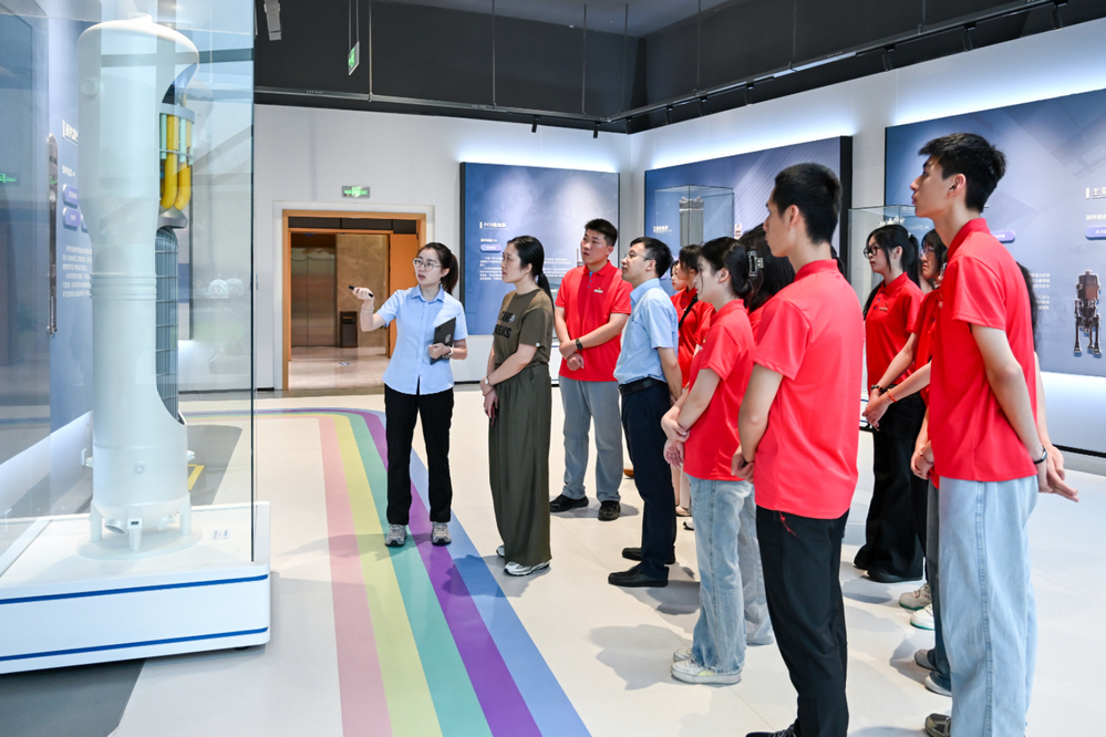 今年适逢中国核工业创建70周年。实践队前往位于云霄县的漳州核电站调研,在华龙科技文化园,漳州能源党建群工处处长尚大俭一行带领队员们通过图文展板、机组模型、5D宣传片、互动游戏等多元形式,了解核电站的建设历程和重要意义,学习核反应堆原理、核燃料组件构成等知识。在得知作为我国自主三代核电技术标杆的“华龙一号”采用能动与非能动安全设计理念,单台机组年发电量超100亿千瓦时,减排效益相当于年植树1.8万公顷后,大家在赞叹之余倍感自豪。在工程管理楼,队员们观摩了数字化模拟沙盘及核电机组仿真系统,从女教员的介绍中了解到培养一名合格操纵员需要大约7年的时间,因投入堪比等重黄金,故称其为“黄金人”,彰显出人才培育的极致标准。现场见闻和体验让大家直呼大开眼界、大长见识,纷纷表示要向核电人学习,将爱国情、强国志转化为报国行,在教育科技人才一体化发展中乘势而为、激扬青春。