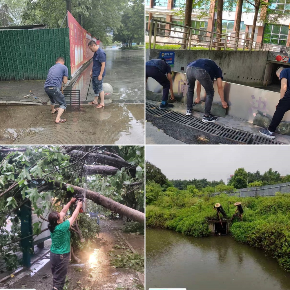 暑期正是汛期和台风季,强降雨天气频发,风雨来袭时,工作人员全员在岗待命、随时响应。近期,大学城出现强降雨,校园路面出现不同程度积水,学校迅速启动防台防汛应急预案,采取相应措施,科学防范应对。暴雨过后,第一时间开展环境整治,清理积水、杂物,扶正树木,检修受损设施,迅速恢复校园整洁与功能。通过实战考验,学校构建的防汛应对体系持续发挥高效作用,为校园安全度汛提供了坚实保障,全力守护师生生命财产安全。