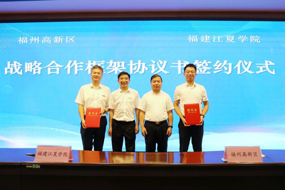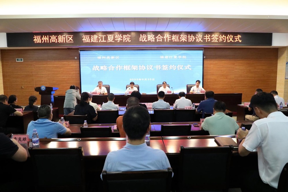 9月25日下午,福建江夏学院与福州高新技术产业开发区管委会战略合作框架协议签约仪式在我校举行。会前,校党委书记凌启淡、校长魏远竹会见了高新区党工委书记李贵勇、管委会副主任蔡培翔一行。校党委副书记陈敏辉出席并主持签约仪式。