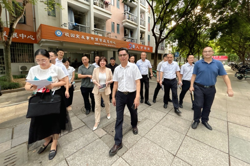 为贯彻落实省教育厅《关于做好中秋国庆等假期及第四季度学校安全工作的通知》精神等上级有关节假日安全的部署,落实学校国庆中秋节前安全稳定暨廉政教育工作会议要求,9月30日下午,校长魏远竹,校党委副书记王长勇、陈敏辉分组带队深入校园,开展节前校园安全隐患排查。