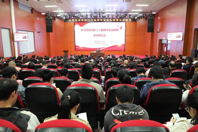 11月11日下午,我校召开学习贯彻党的二十届四中全会精神宣讲报告会。全省教育系统学习宣传贯彻党的二十届四中全会精神“百人宣讲团”成员、校党委书记凌启淡作宣讲报告,全体校领导出席,全体处科级干部,师生党支部书记、马克思主义学院教师、青马班学员和学生代表参加。