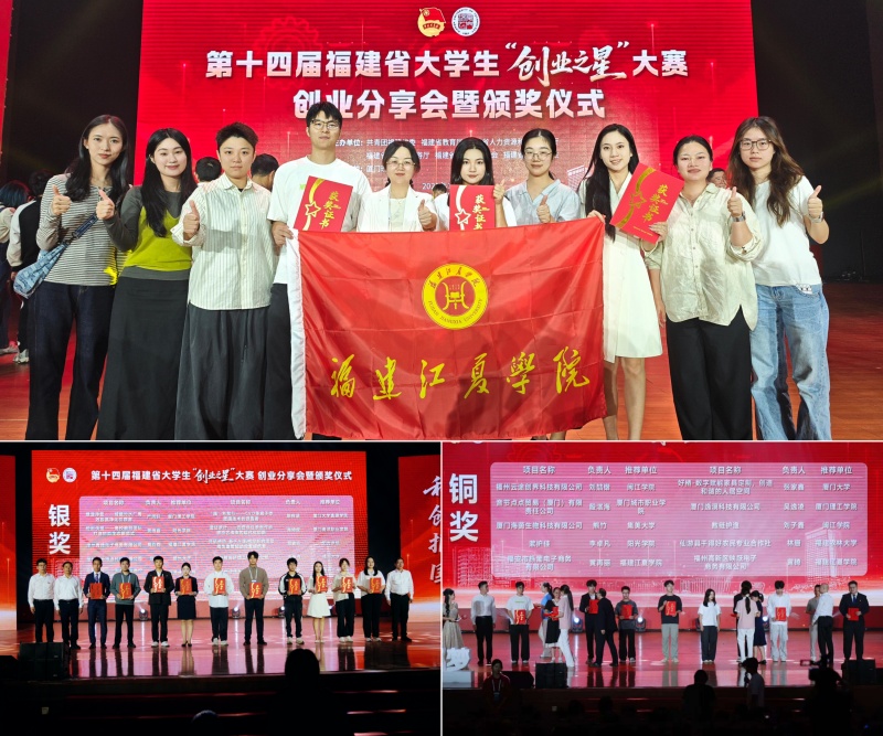 11月10日,由共青团福建省委、省教育厅、省人力资源和社会保障厅、省文化和旅游厅、省科学技术协会、省学生联合会联合主办的第十四届福建省大学生“创业之星”大赛创业分享会暨颁奖仪式在厦门理工学院举行。我校选送的“漳州青播电子商务有限公司”(项目负责人:公共事务学院黄钧钧)勇夺银奖,“福安市栎葡电子商务有限公司”(项目负责人:经济贸易学院黄再丽)、“福州高新区映跃电子商务有限公司”(项目负责人:公共事务学院黄锜)摘得铜奖。