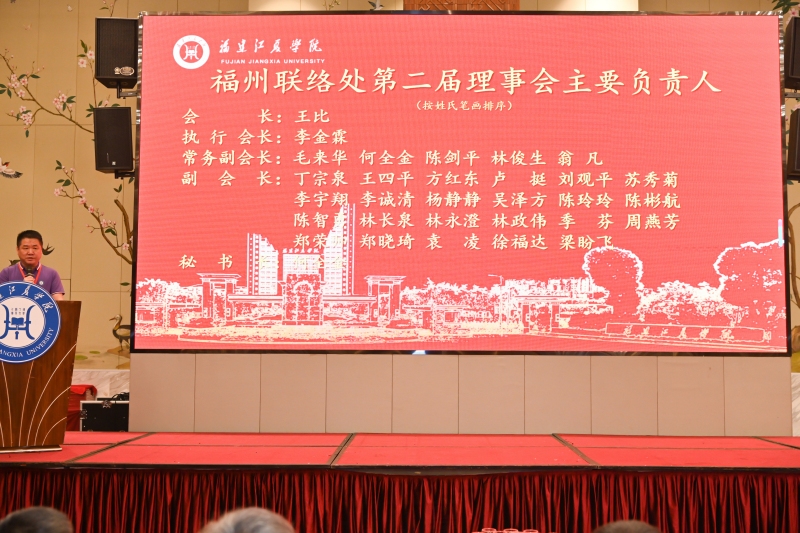 大会审议通过了福州联络处第一届理事会工作报告、第一届理事会财务工作报告、第一届监事会工作报告以及福州联络处规程(草案),选举产生福州联络处第二届理事会、监事会。王比当选会长,李金霖当选执行会长,林浩当选监事长。