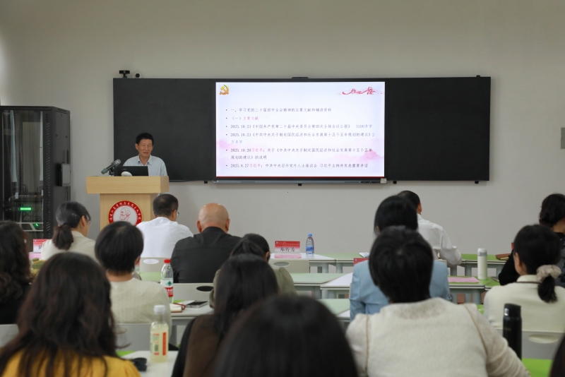 在专题报告环节,郑传芳教授深入宣讲和阐释了党的二十届四中全会精神,全面梳理和解读了全会的主要文献和辅导资料,并就如何推动全会精神融入思政课教学进行了具体的指导。
