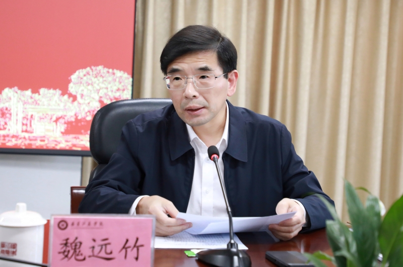魏远竹作重点发言,并就全面推进学校高效能治理工作进行部署。他强调,要积极探索项目化、网格化、清单化、责任化相协同的管理范式,以机制重塑促提质增效,推动治理作风从“被动应对”向“主动作为”转变。要围绕核心业务场景,加强标准化建设,制定统一的操作规范、质量标准、评价体系,并借助数智化手段构建全过程闭环管理机制,推动治理方式从“经验驱动”向“科学治理”转变。要坚持依法治教、依法办学、依法治校,健全完善以学校章程为核心的规章制度体系,持续推进法治校园建设,推动治理生态从“松散粗放”向“系统完备”转变。